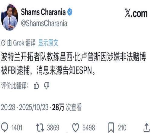北京时间10月23日,重磅大轰动!杨瀚森恩师被捕,刚刚完成生涯首秀的他就迎来最差的消息,开拓者的动荡到来了。