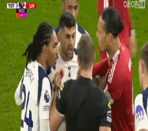 第33分钟,哈维-西蒙斯踩踏范戴克小腿,VAR确认后被红牌罚下,热刺少一人作战!