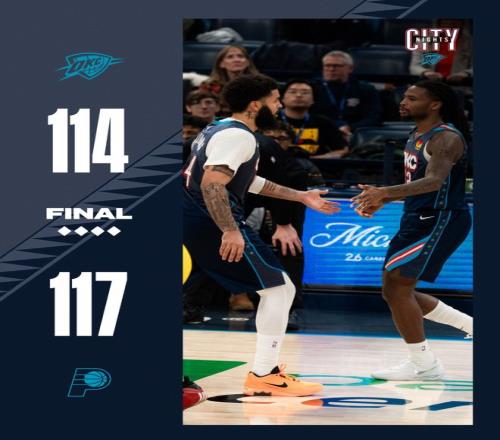 北京时间1月24日,NBA常规赛爆出超大冷门,联盟第一的雷霆队114-117不敌联盟 倒数第一的步行者队,这场比赛谁也想不到雷霆会一败涂地,首节开场OKC就落后11分之多,上半场雷霆最多落后到17分,雷霆一直被联盟倒一的步行者压制到最后,SGA无论怎么拿分都无法逆转。